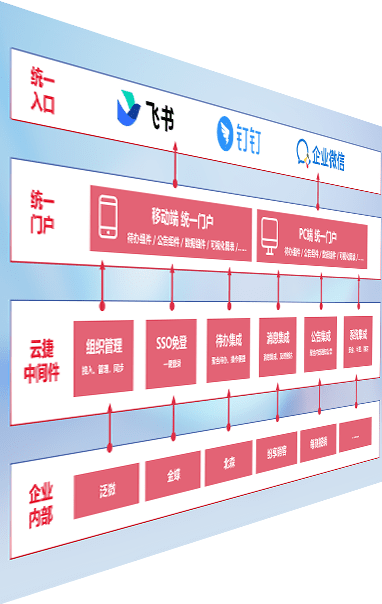 对协作平台提供支持服务,,,支持企业应用与协作平台对接,,,,包含组织同步、、、、消息集成、、、待办集成等。。支持目前主流的协作平台:钉钉、、、企微和飞书。。